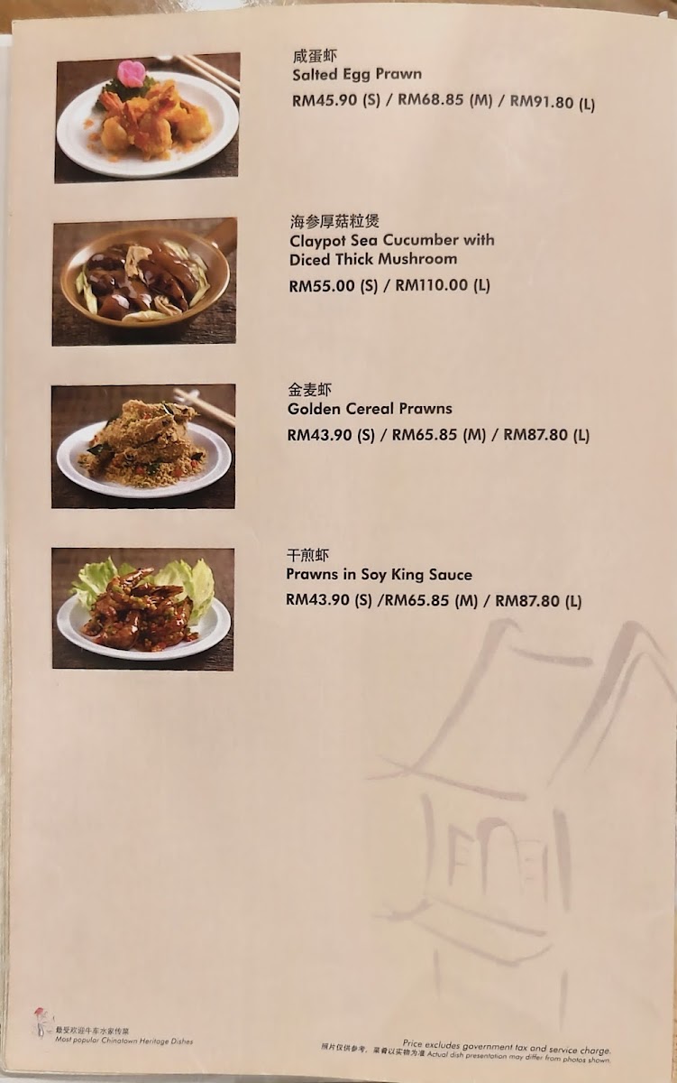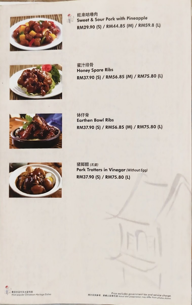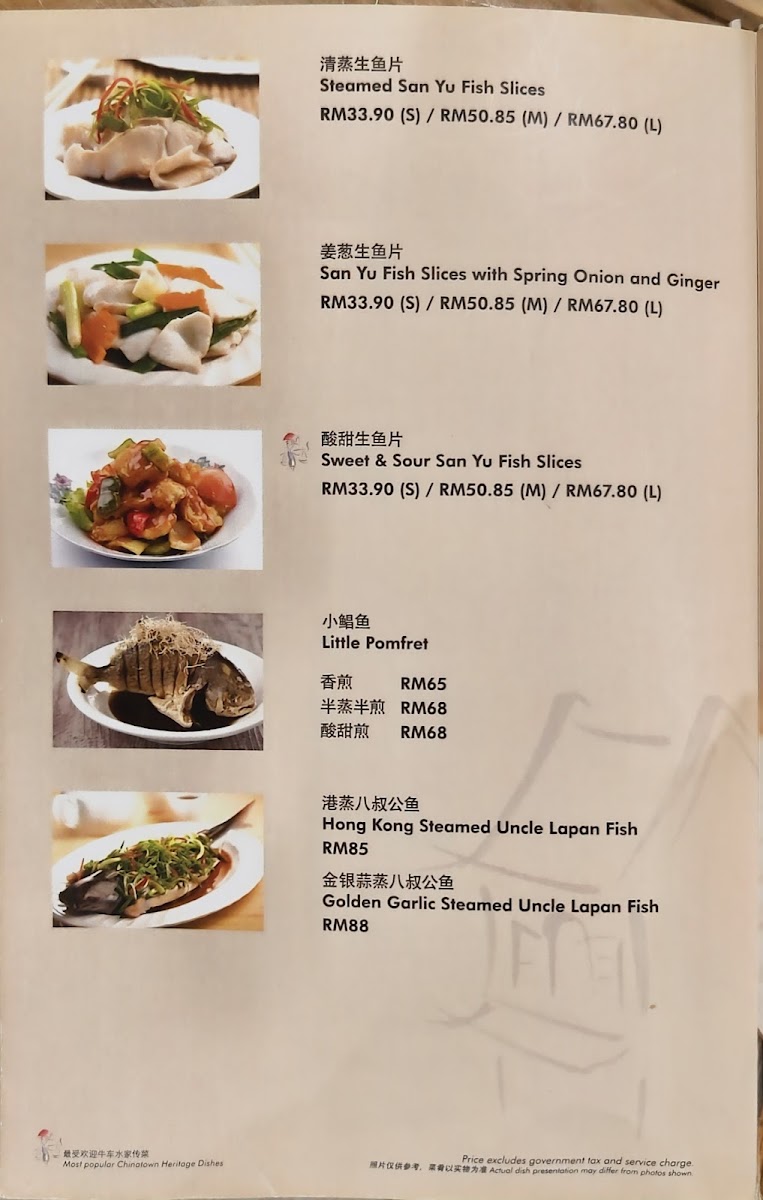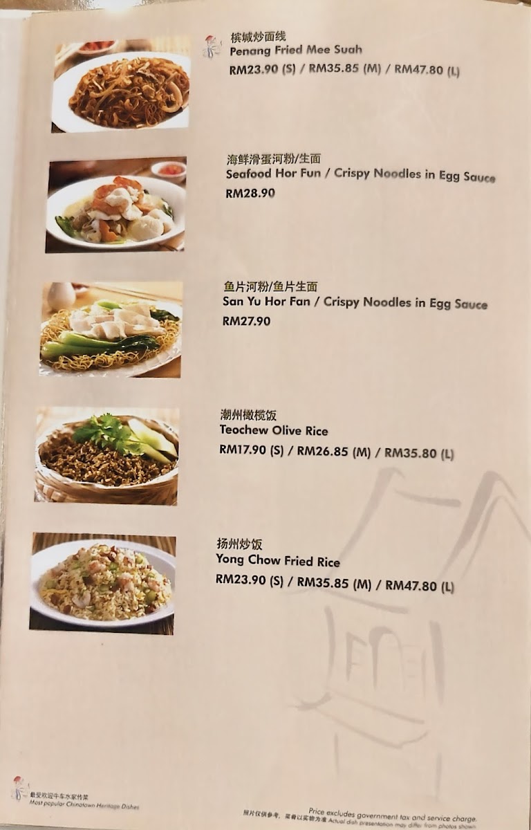 The menu at Soup Restaurant in Bandar Utama offers a comforting selection of traditional Chinese home-style dishes that emphasize simple ingredients and nourishing flavors, making it a reliable choice for family-style dining. Signature items such as Samsui Ginger Chicken stand out for their tender texture and aromatic ginger fragrance, while the Hometown Tofu and Claypot Tofu provide soft, silky bites packed with savory sauce. Vegetable dishes like Kangkung Stir Fry Bean Curd Sauce and Eggplant with Salted Fish and Sliced Pork add balance to the meal with rich yet homely flavors. Staple rice and noodle options including Steamed Rice with Chinese Sausage & Chicken, Yong Chow Fried Rice, and Penang Fried Mee Suah make the menu satisfying for those seeking hearty mains. For seafood lovers, the Hometown Fried Fish Belly, Prawns with Taufu, Steam Fish, and Seafood Crispy Noodles in Egg Sauce offer fresh and flavorful choices. Meat dishes such as Sweet N Sour Pork and Honey Spare Ribs bring a pleasant sweetness that complements the more savory items, while comforting soups like Spinach Salted Egg Drop Soup and Flower with Chicken Soup complete the meal with a warm, nourishing finish. Overall, the menu reflects a strong focus on traditional flavors, balanced nutrition, and comforting textures, making it especially suitable for group dining and those who appreciate classic Chinese home cooking.